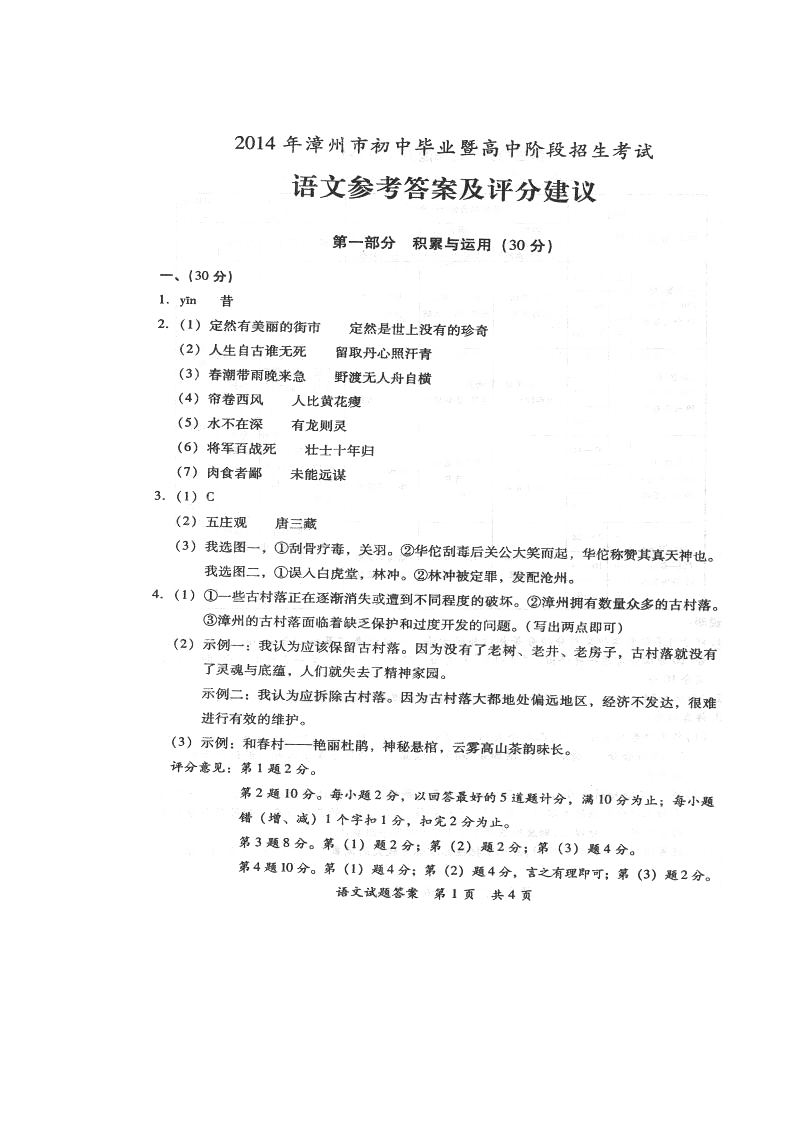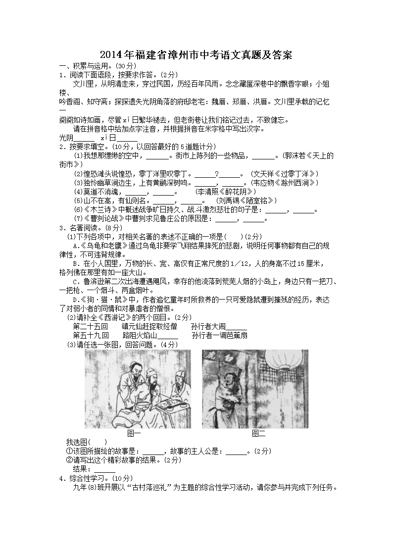 【文档名称】 2014年福建省漳州市中考语文真题及答案(Word版).doc