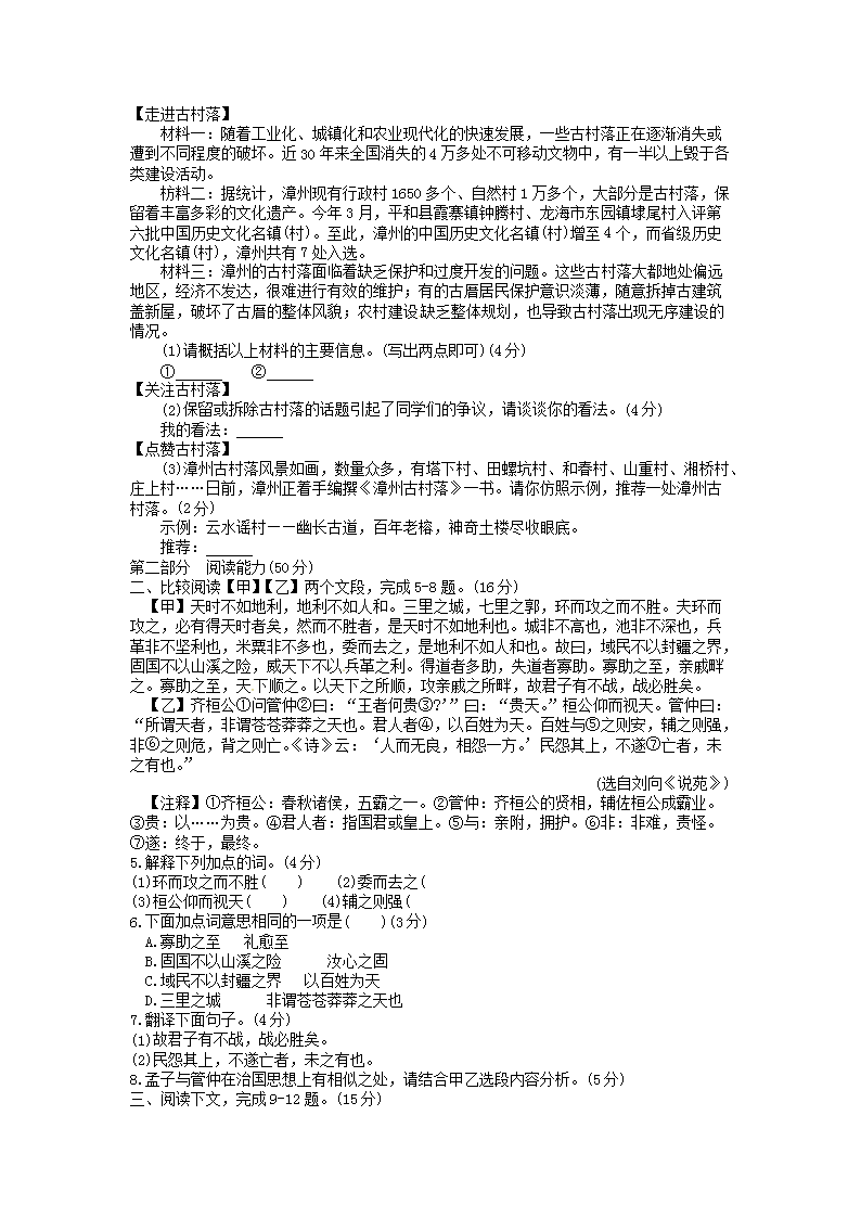【文档预览】 无忧考网整理发布2014年福建省漳州市中考语文真题及答案(Word版),前五页预览如下: