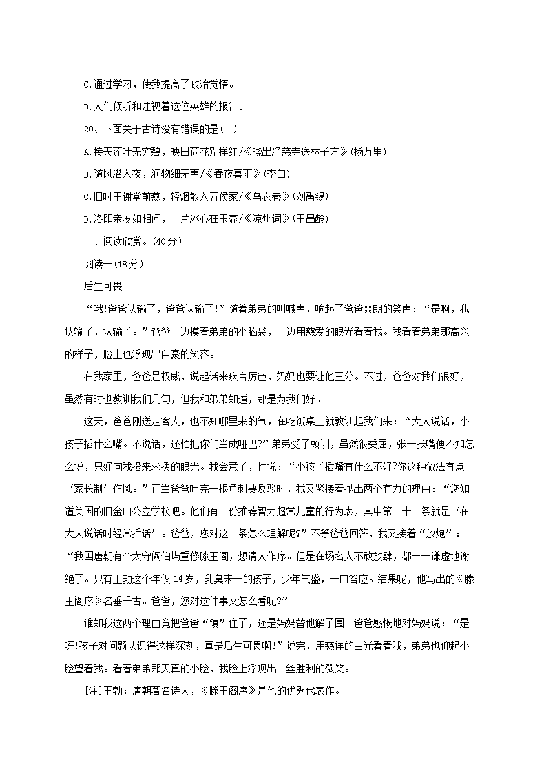 【文档预览】 无忧考网整理发布2017年北京重点中学小升初语文真题及答案(Word版),前五页预览如下: