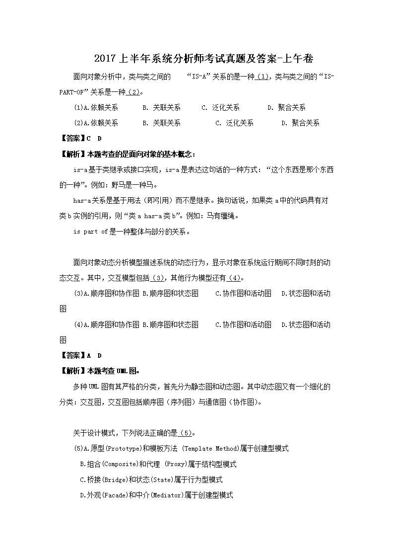 【文档名称】 2017上半年系统分析师考试真题及答案-上午卷(Word版).doc