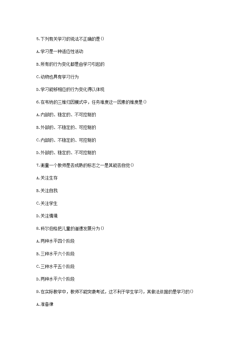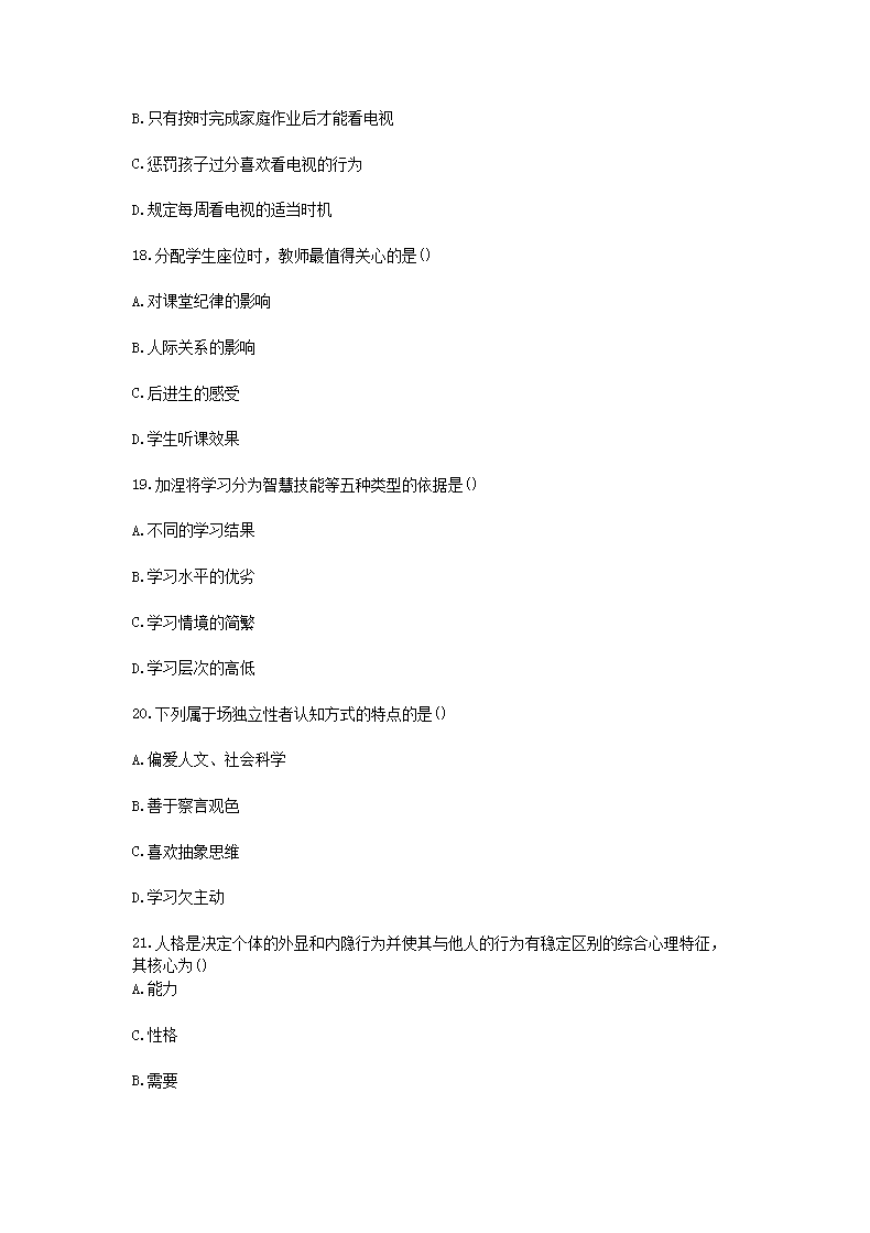 【文档预览】 无忧考网整理发布2017年内蒙古教师资格考试教育心理学(初等)真题及答案(Word版),前五页预览如下: