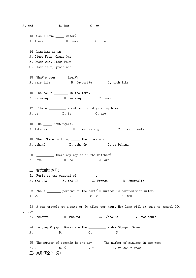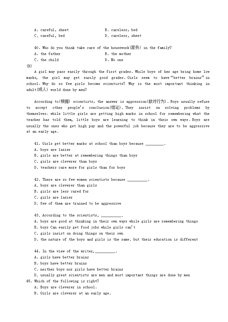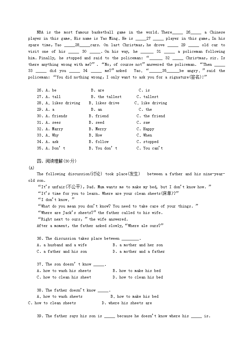 【文档预览】 无忧考网整理发布2011年北京四中小升初英语真题及答案(Word版),前五页预览如下: