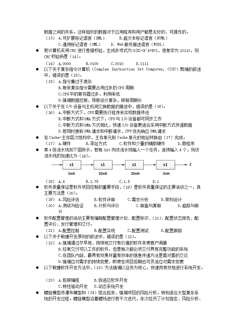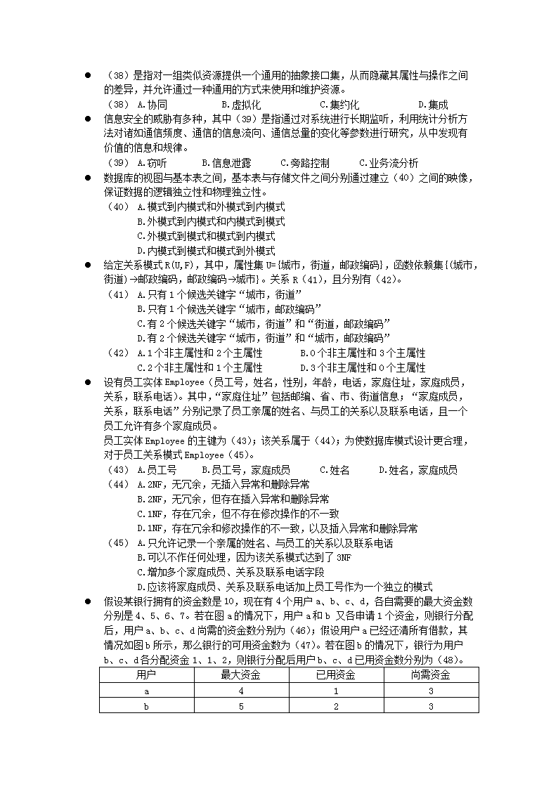 【文档预览】 无忧考网整理发布2011上半年系统分析师考试真题及答案-上午卷(Word版),前五页预览如下: