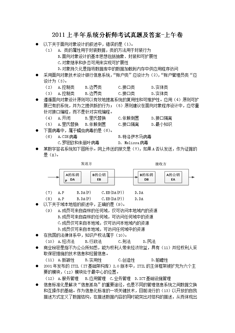 【文档名称】 2011上半年系统分析师考试真题及答案-上午卷(Word版).doc