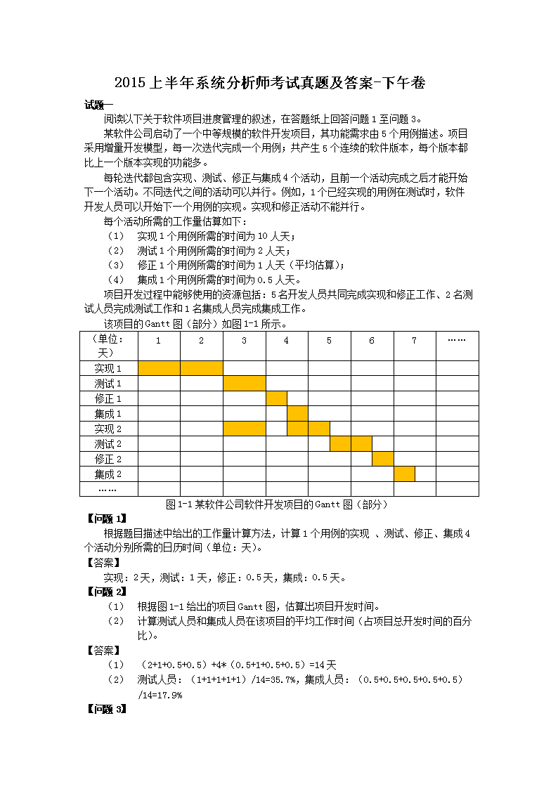 【文档名称】 2015上半年系统分析师考试真题及答案-下午卷(Word版).doc