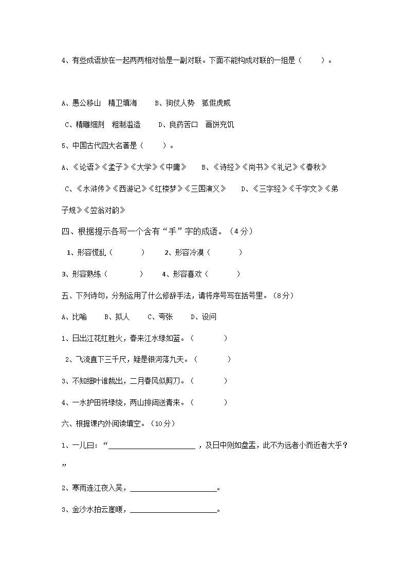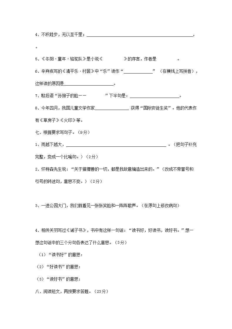 【文档名称】 2016年湖南长沙小升初语文真题及答案(Word版).doc