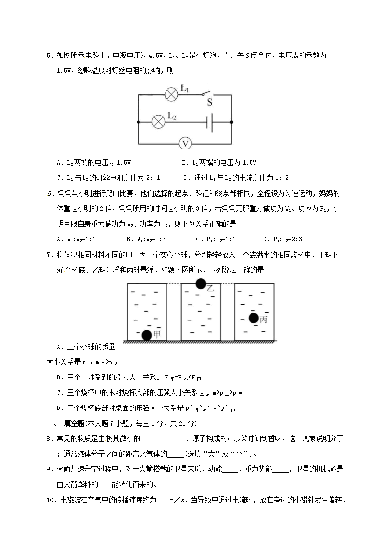 【文档名称】 2017年广东省东莞市中考物理试题与答案(Word版).doc
