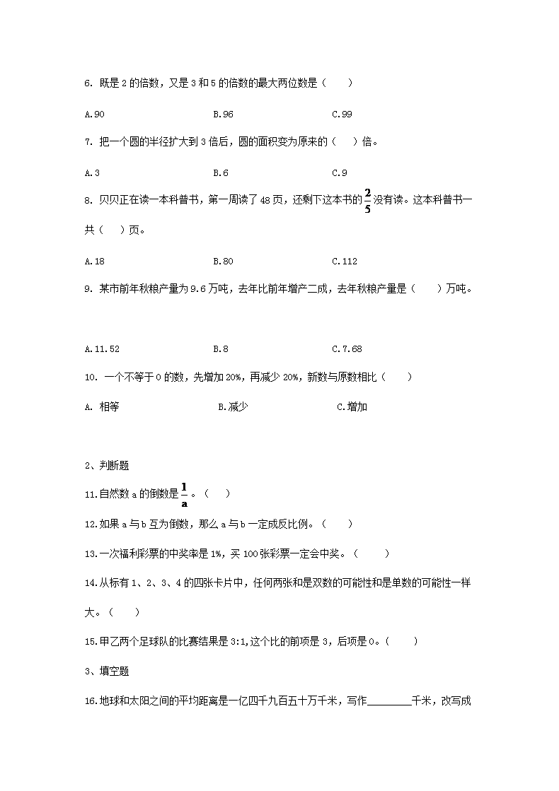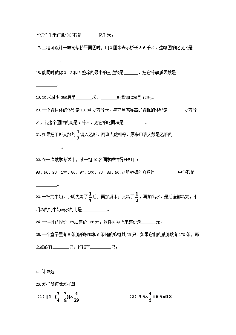 【文档名称】 2019年湖南长沙小升初数学真题(Word版).doc