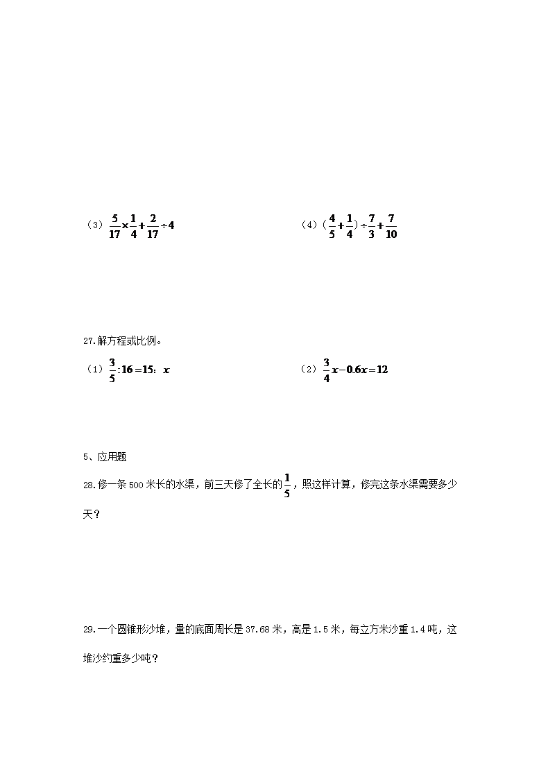 【文档预览】 无忧考网整理发布2019年湖南长沙小升初数学真题(Word版),前五页预览如下: