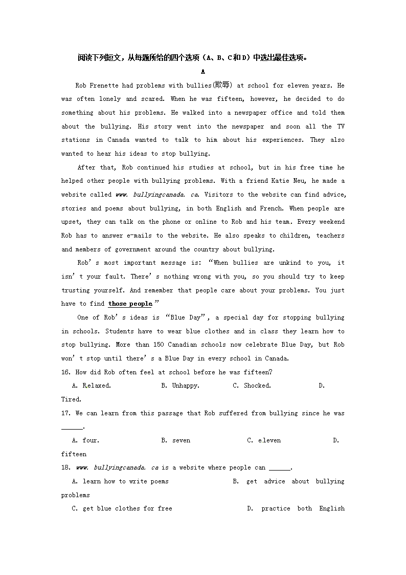 【文档名称】 2016浙江省杭州市中考英语真题及答案(Word版).doc