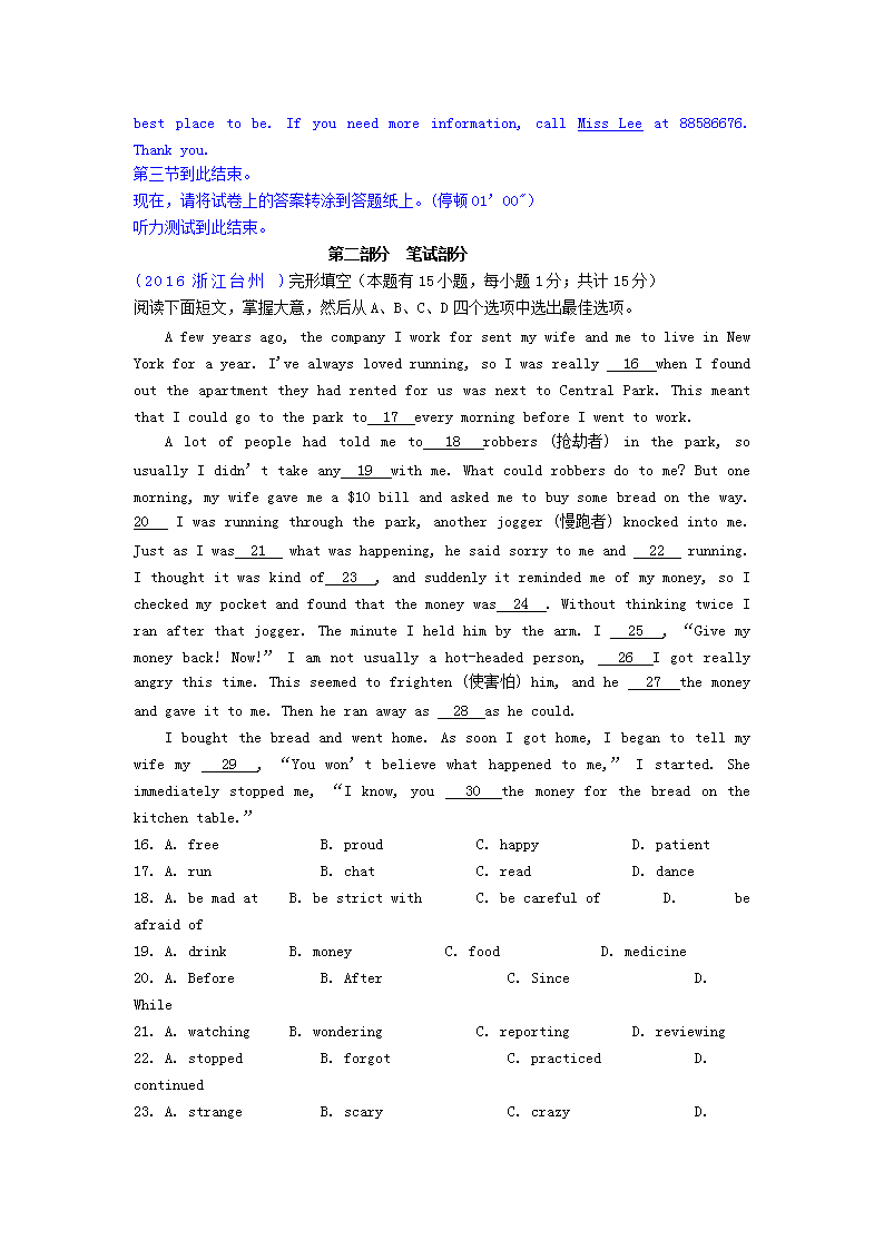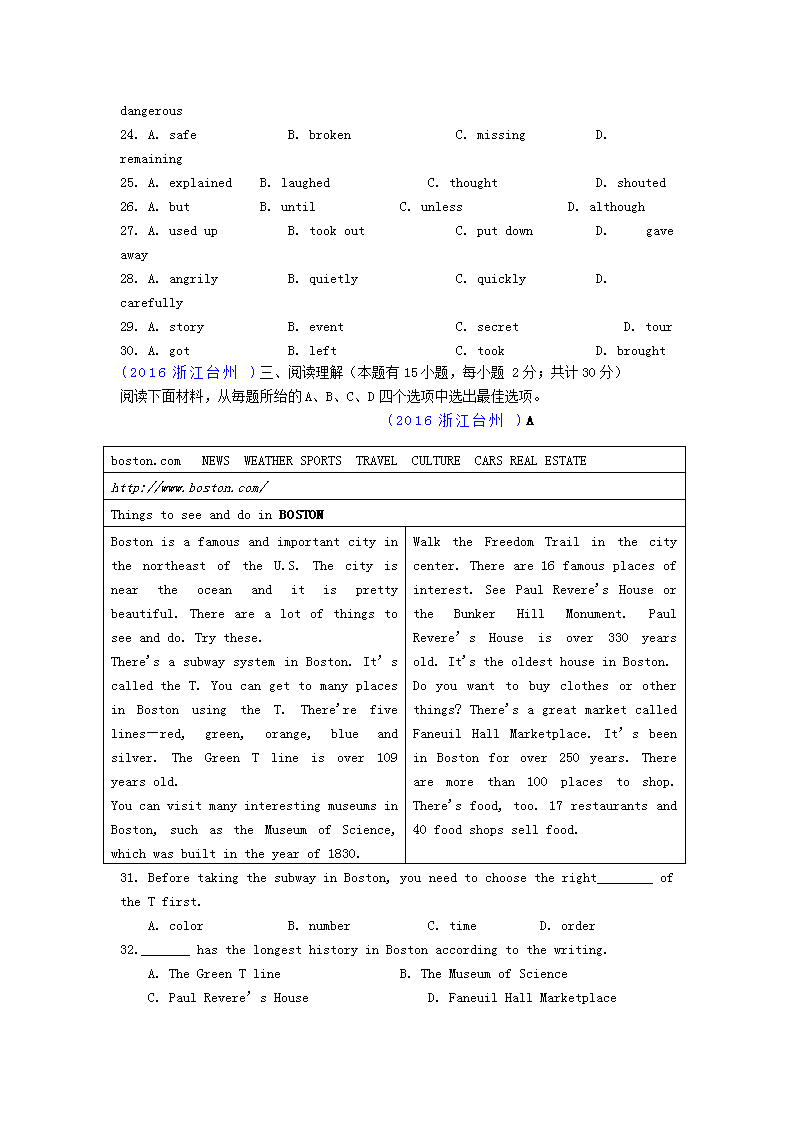 【文档名称】 2016浙江省台州市中考英语真题及答案(Word版).doc