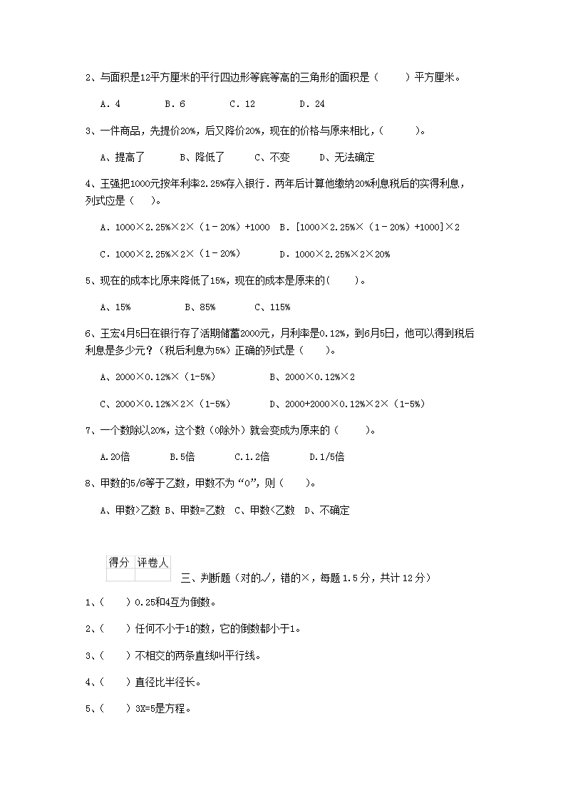 【文档预览】 无忧考网整理发布2019年新疆乌鲁木齐小升初数学真题及答案(Word版),前五页预览如下: