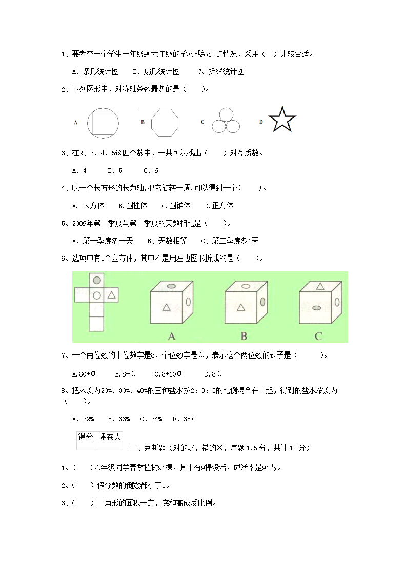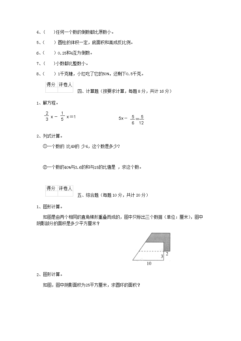 【文档名称】 2019年内蒙古乌海小升初数学真题及答案(Word版).doc