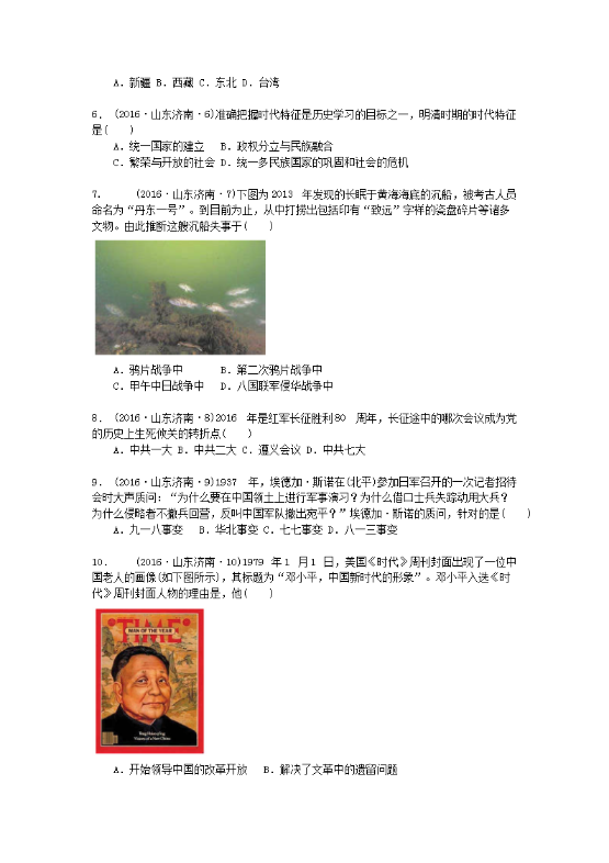 【文档名称】 2016山东省济南市中考历史真题及答案(Word版).doc