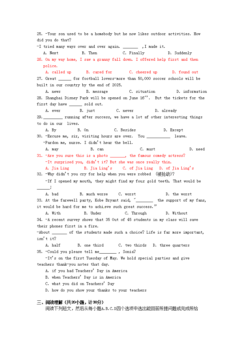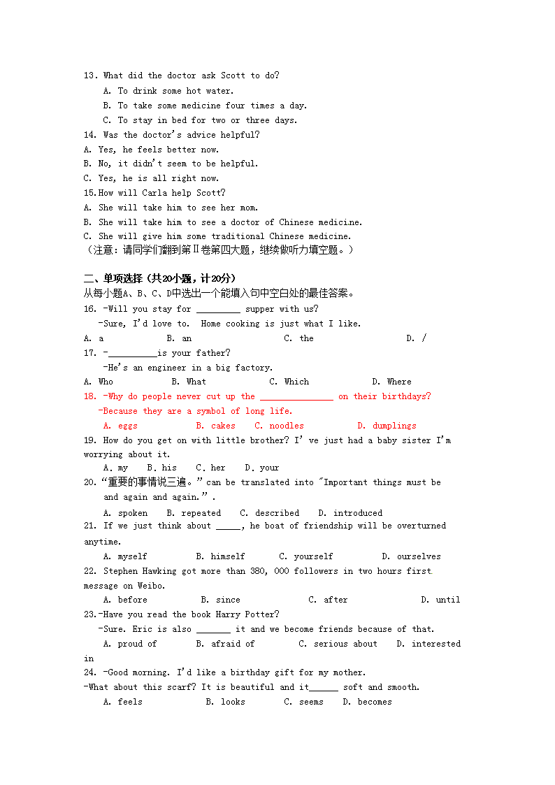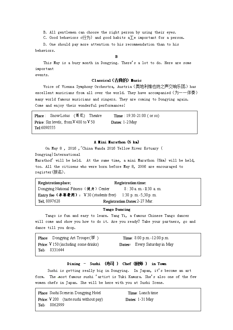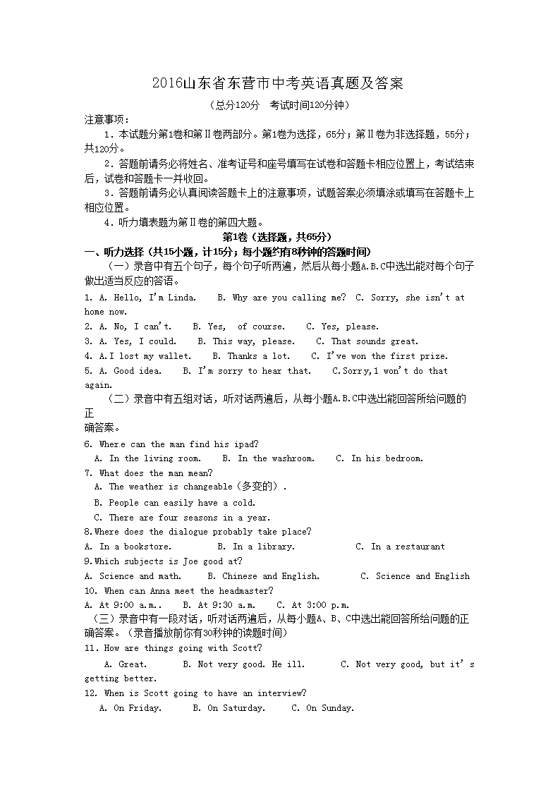 【文档名称】 2016山东省东营市中考英语真题及答案(Word版).doc