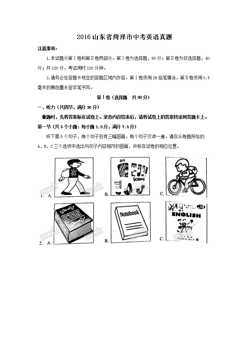 【文档预览】 无忧考网整理发布2016山东省菏泽市中考英语真题(Word版),前五页预览如下: