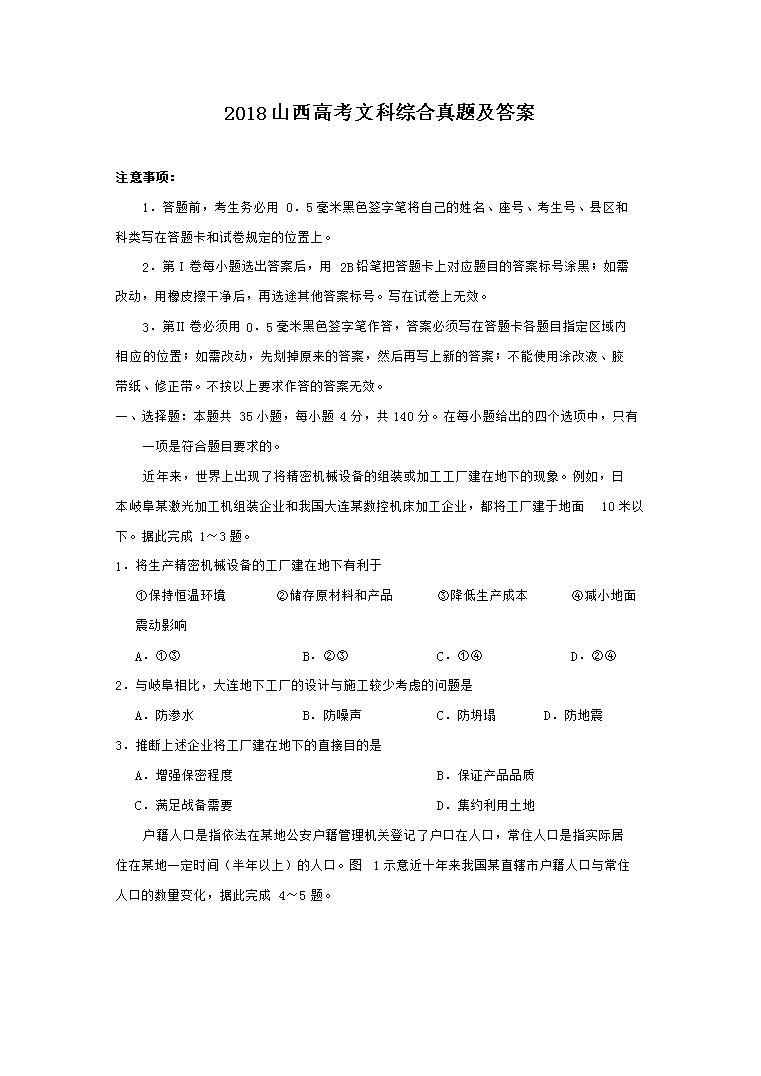 【文档预览】 无忧考网整理发布2018山西高考文科综合真题及答案(Word版),前五页预览如下: