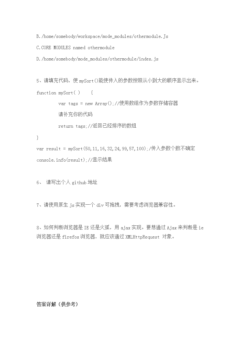 【文档名称】 2015年阿里巴巴校园招聘前端工程师考试真题及答案(Word版).doc