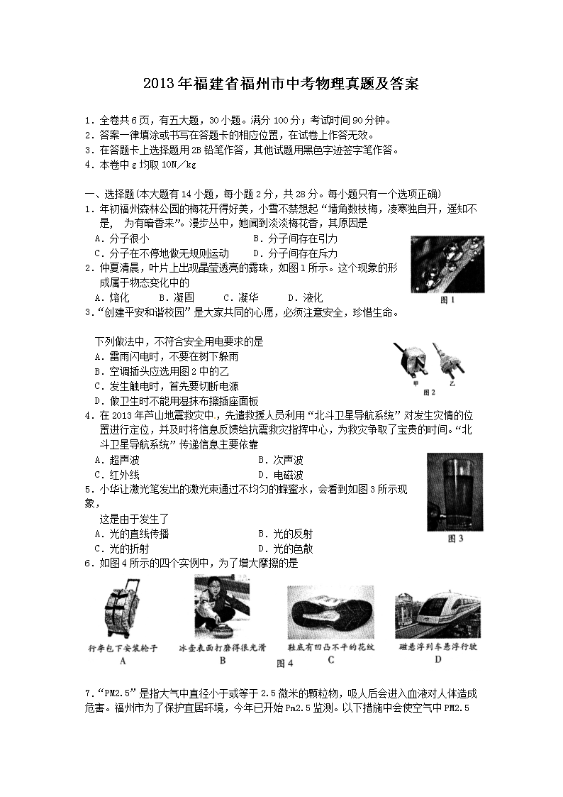 【文档预览】 无忧考网整理发布2013年福建省福州市中考物理真题及答案(Word版),前五页预览如下: