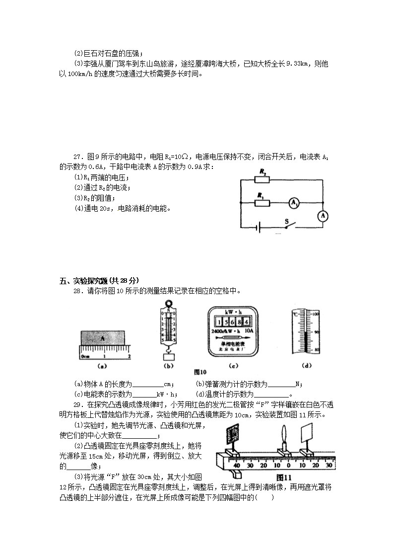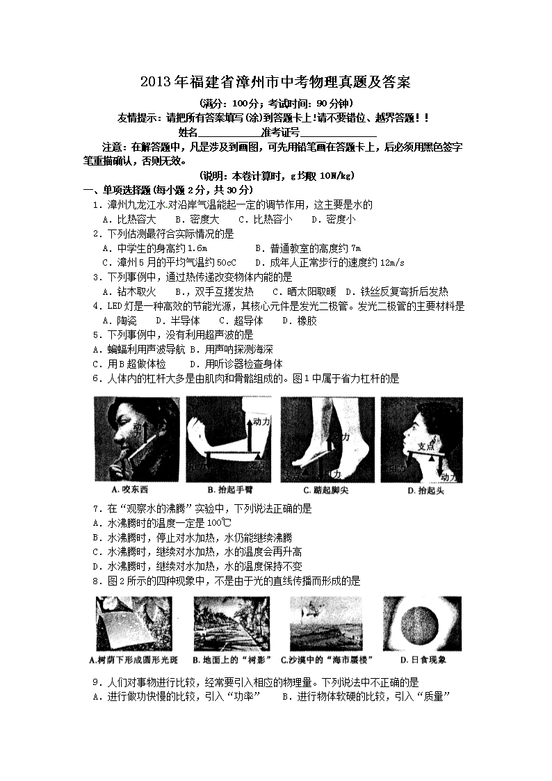 【文档名称】 2013年福建省漳州市中考物理真题及答案(Word版).doc
