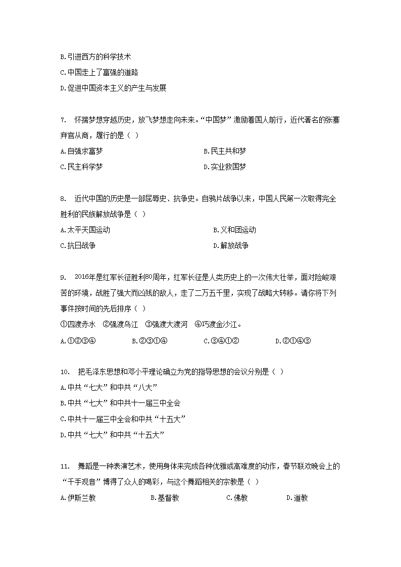 【文档名称】 2016年贵州省六盘水市中考历史试题及答案(Word版).doc