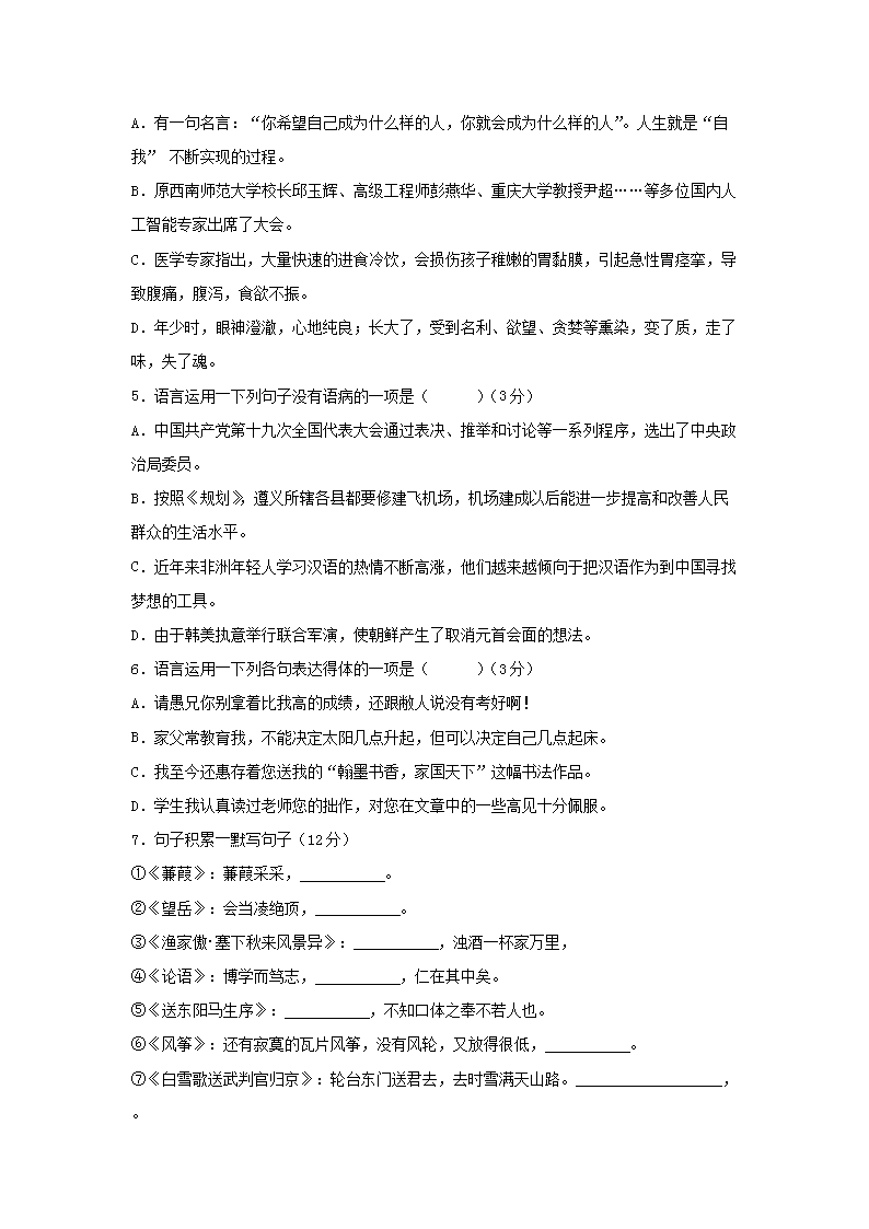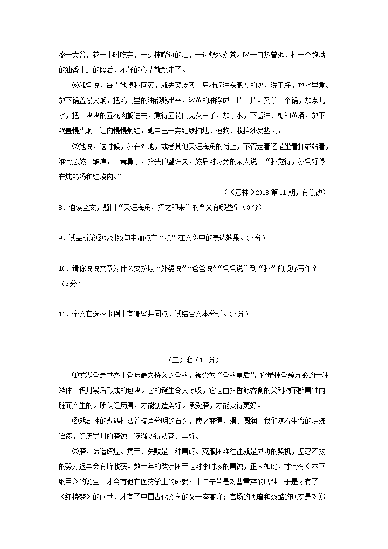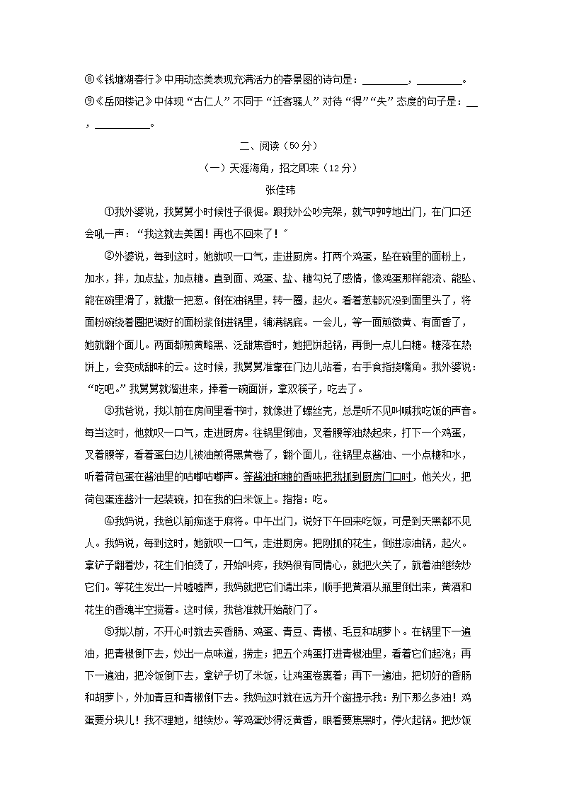 【文档名称】 2018年贵州省遵义市中考语文试题及答案(Word版).doc
