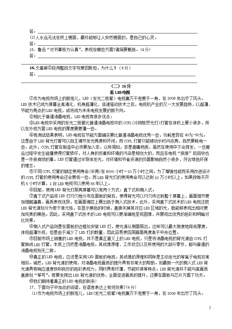 【文档预览】 无忧考网整理发布2010年四川省绵阳市中考语文真题及答案(Word版),前五页预览如下: