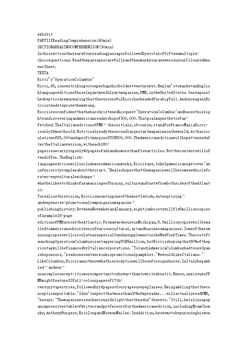 【文档名称】 1999年专业英语八级考试真题(Word版).doc