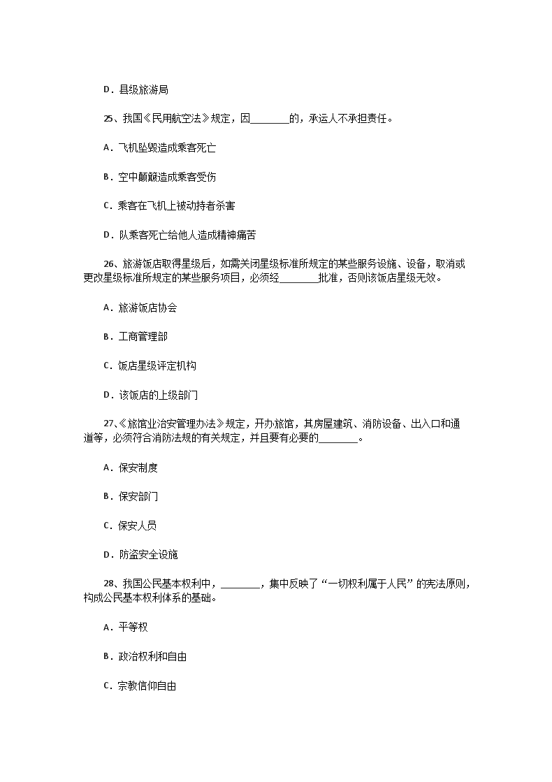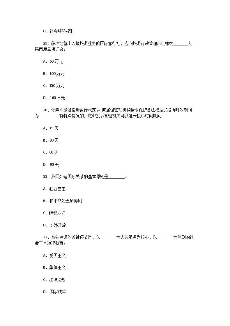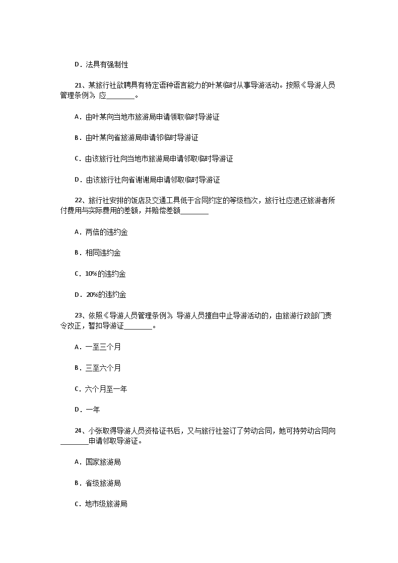 【文档名称】 2001年福建导游资格考试政策法规真题(Word版).doc