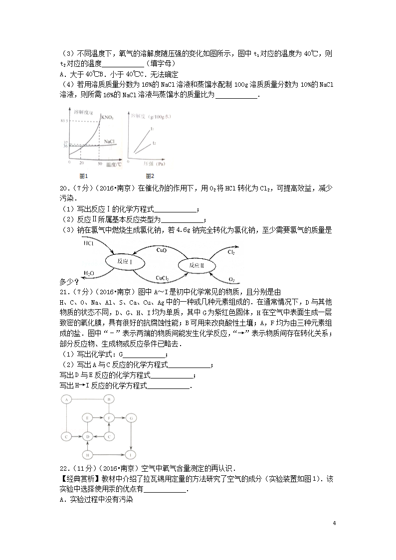 【文档名称】 2016江苏省南京市中考化学真题及答案(Word版).doc