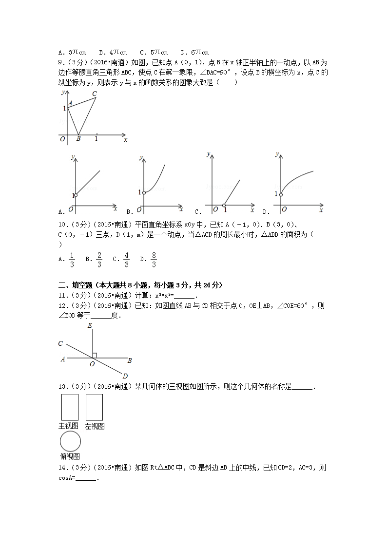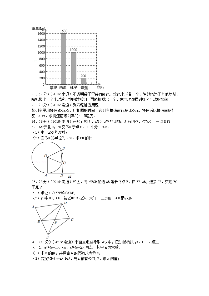 【文档名称】 2016江苏省南通市中考数学真题及答案(Word版).doc