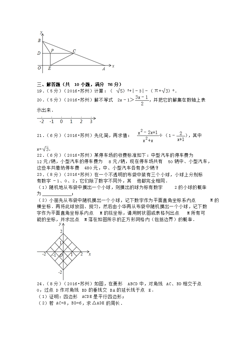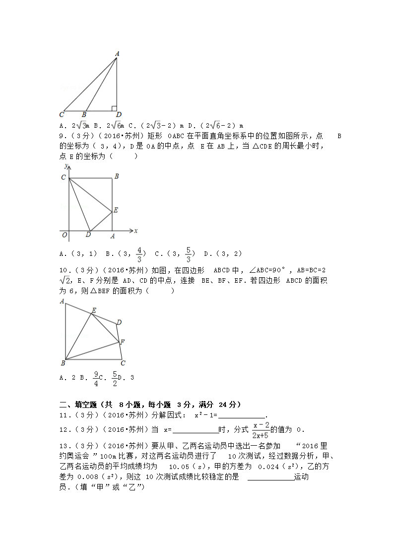 【文档名称】 2016江苏省苏州市中考数学真题及答案(Word版).doc
