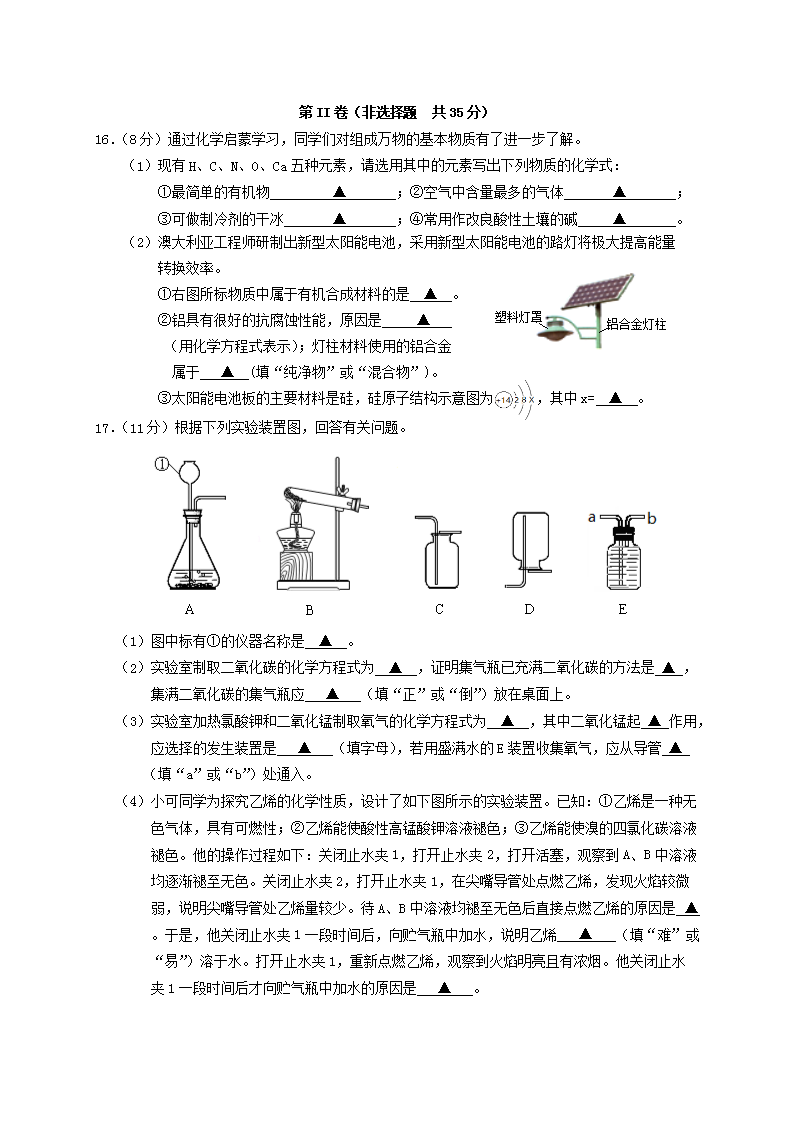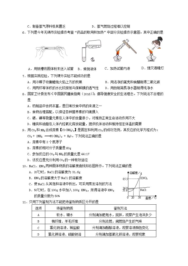 【文档名称】 2016江苏省无锡市中考化学真题(Word版).doc