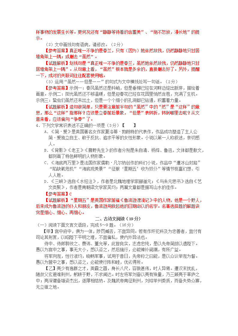 【文档名称】 2016江苏省徐州市中考语文真题及答案(Word版).doc
