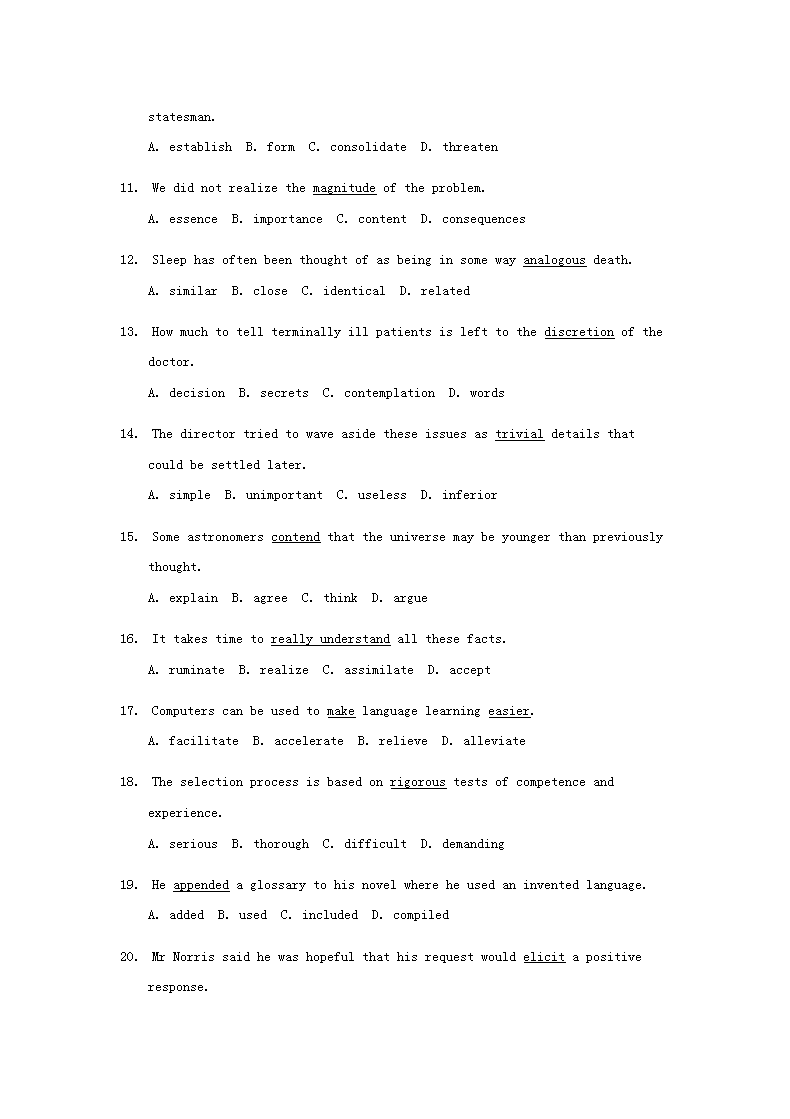 【文档名称】 2015年广西民族大学基础英语考研真题A卷(Word版).doc
