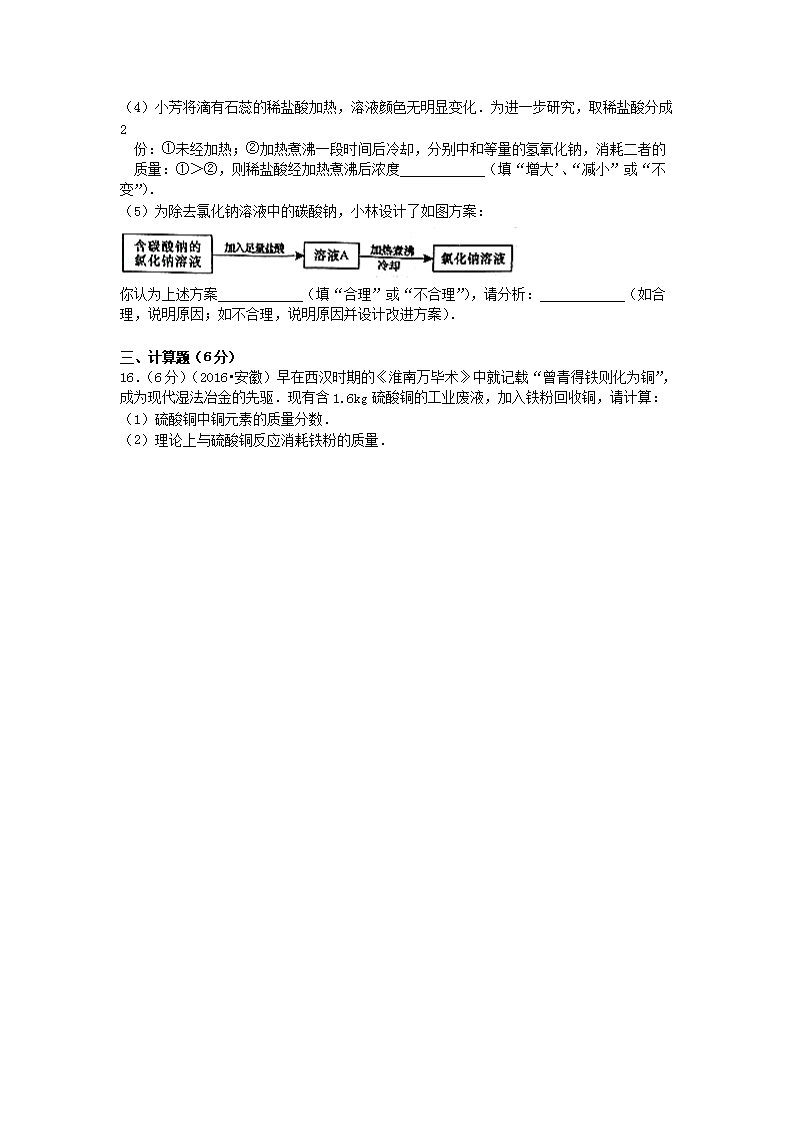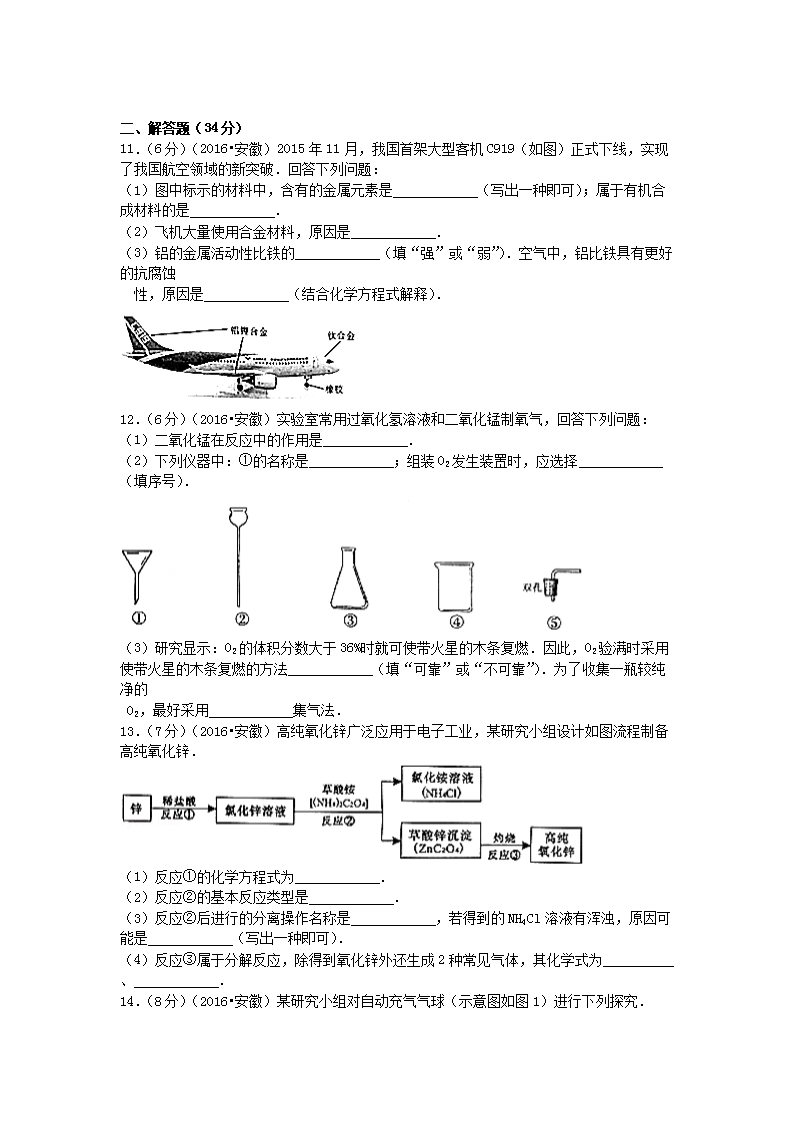 【文档名称】 2016安徽省中考化学真题及答案(Word版).doc