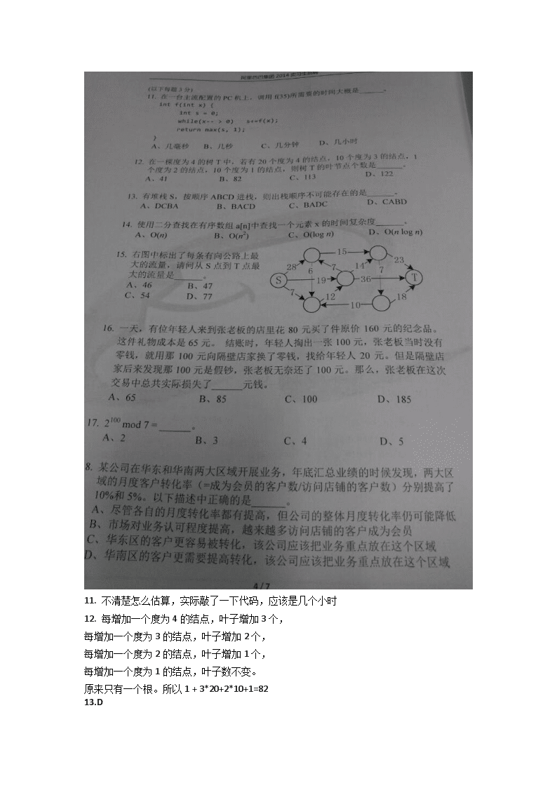 【文档名称】 2014年3月阿里巴巴实习招聘笔试题及部分答案(Word版).doc
