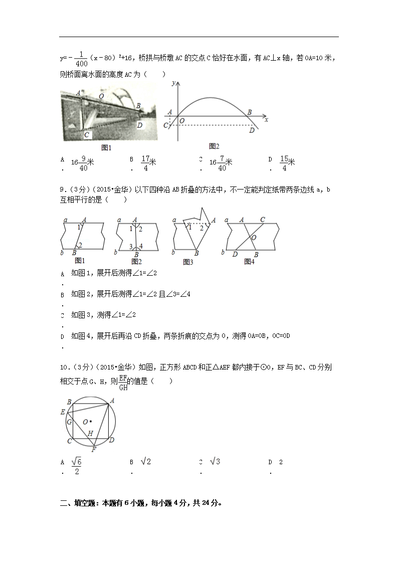 【文档名称】 2015浙江省金华市中考数学真题及答案(Word版).doc