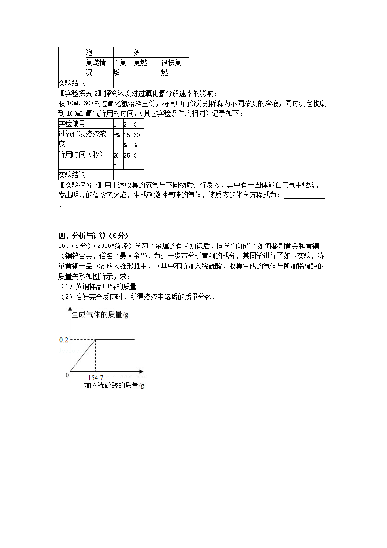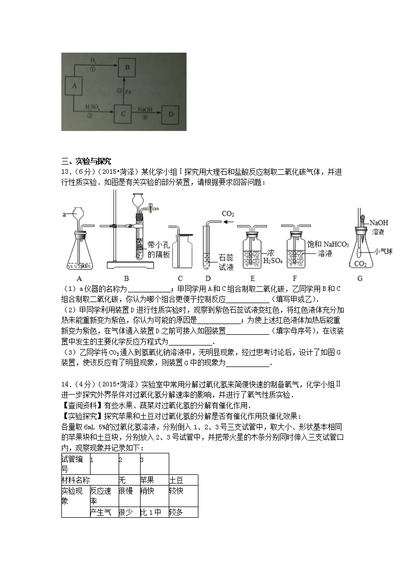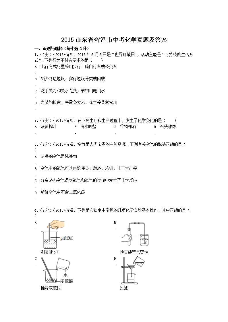 【文档名称】 2015山东省菏泽市中考化学真题及答案(Word版).doc