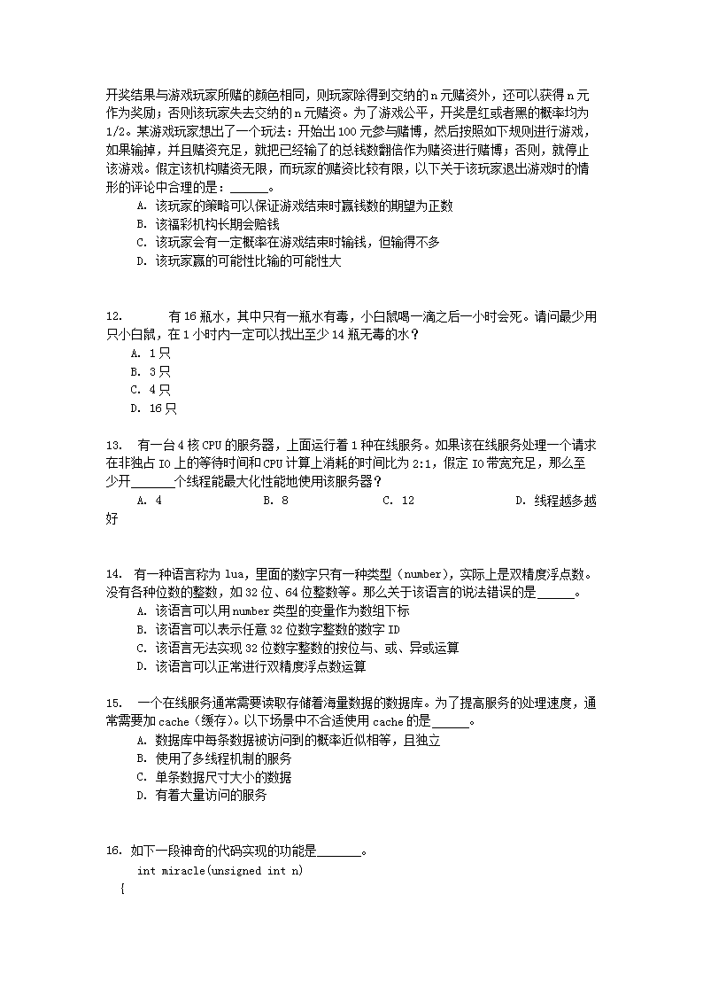 【文档预览】 无忧考网整理发布2014年秋季阿里巴巴校园招聘北京站系统工程师试题(Word版),前五页预览如下:
