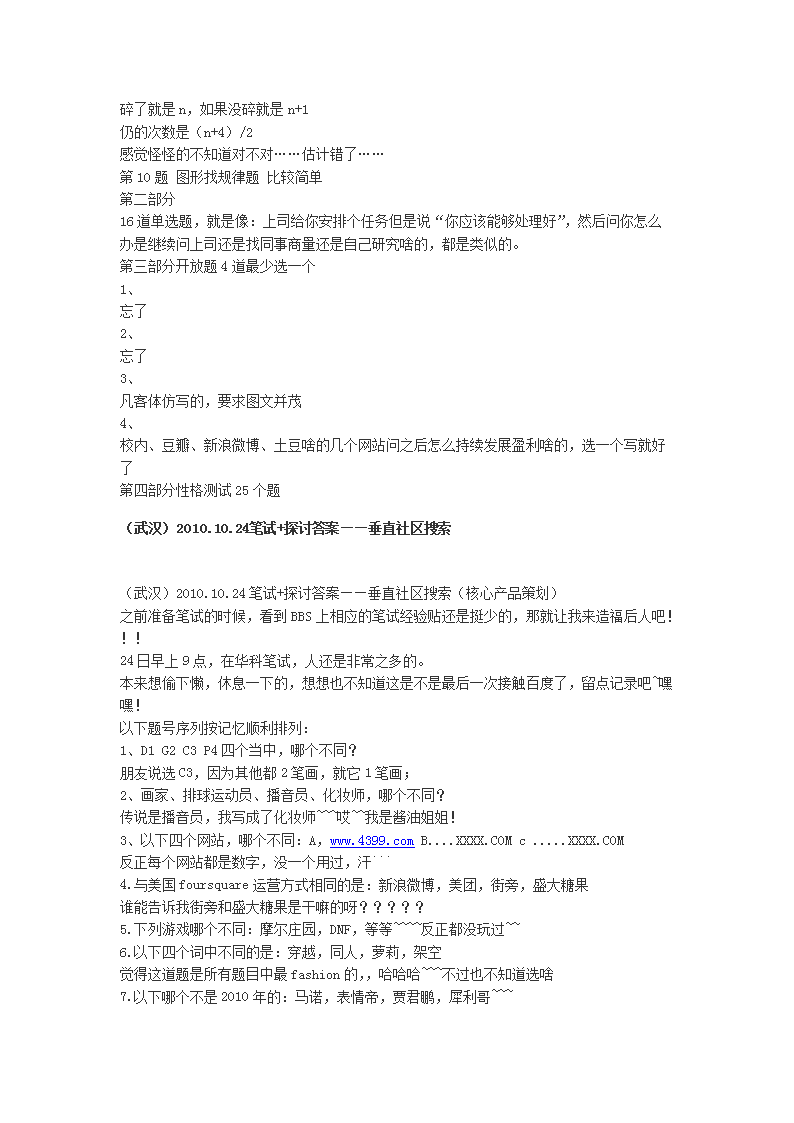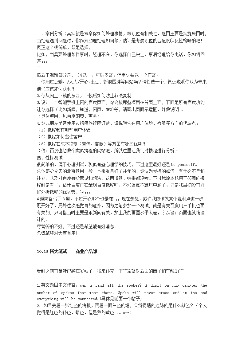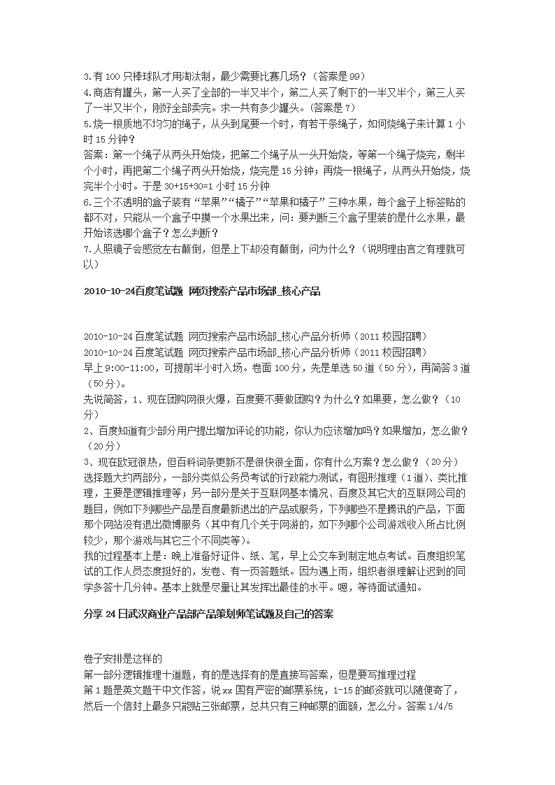 【文档名称】 2010-2011年百度各部门招聘笔试题及面经汇总(Word版).doc