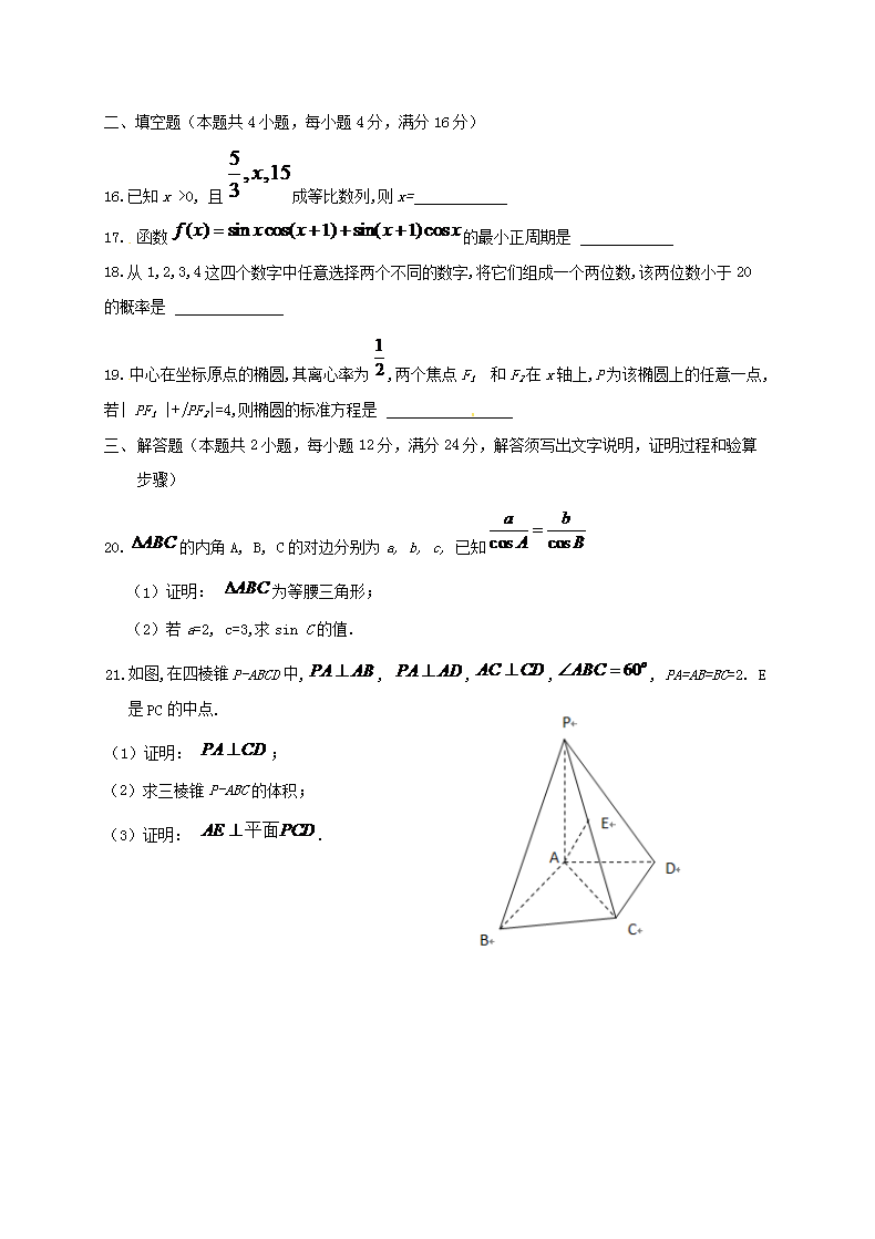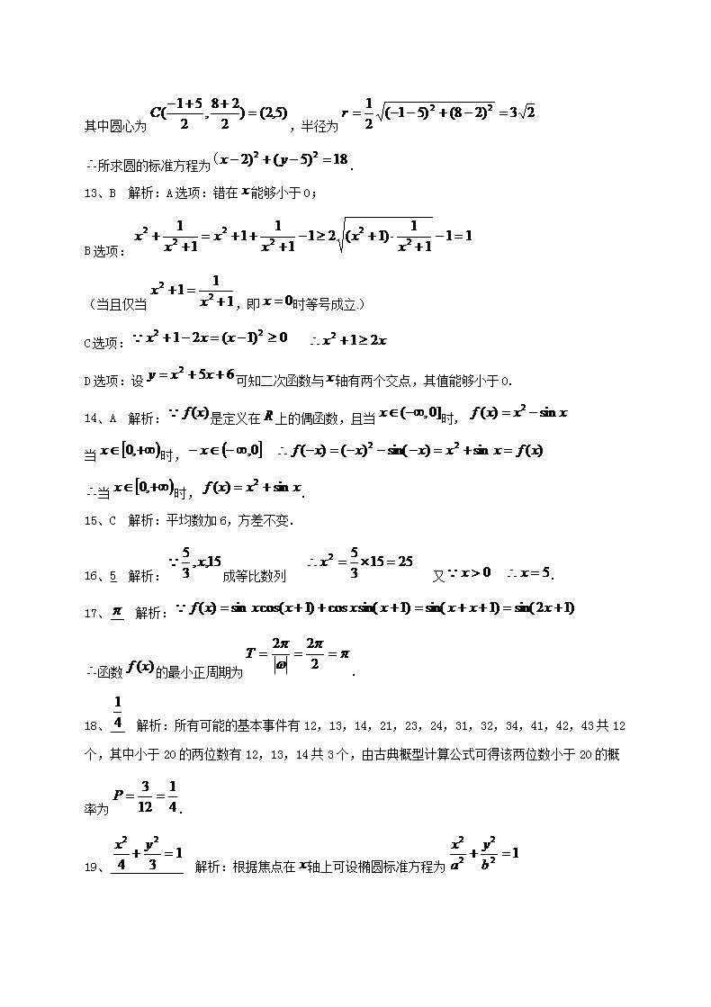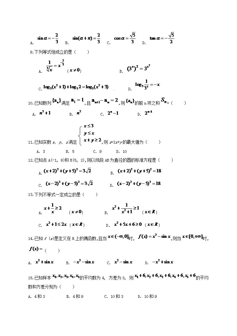 【文档名称】 2019年广东普通高中会考数学真题及答案(Word版).doc