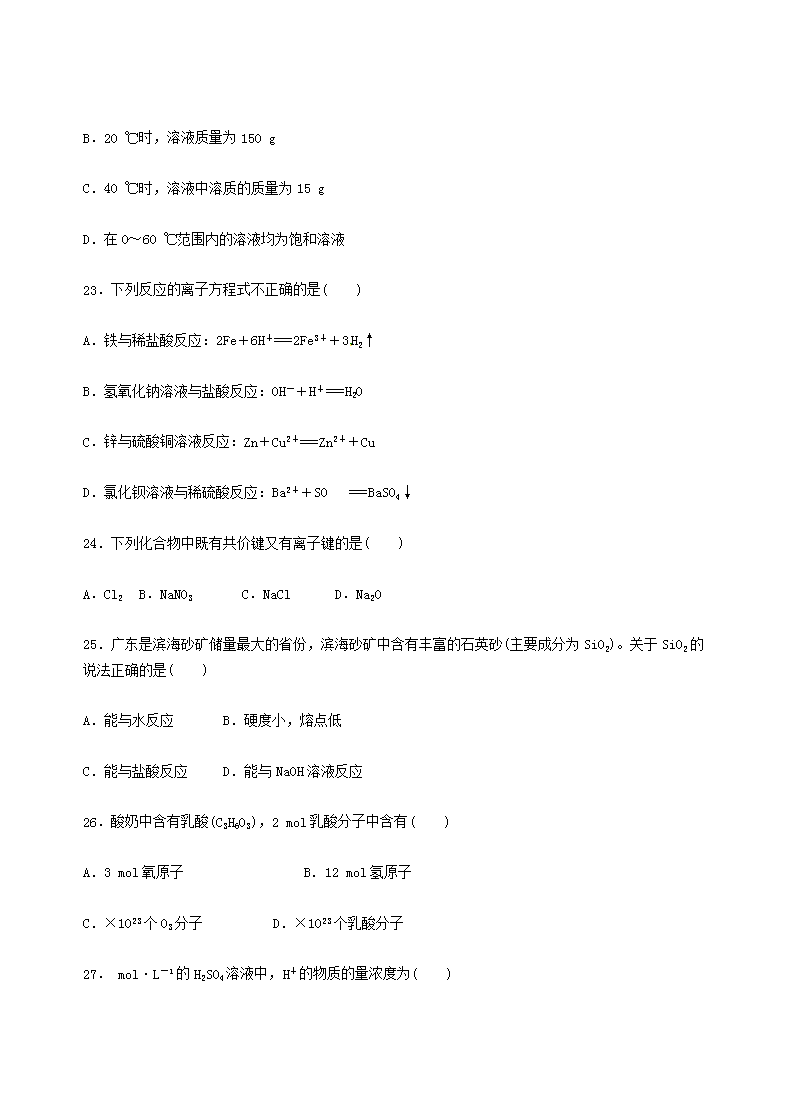 【文档名称】 2017年广东普通高中会考化学真题及答案(Word版).doc