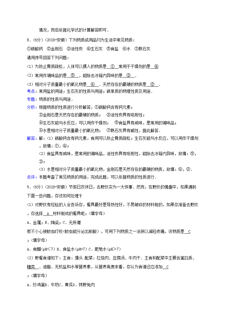 【文档名称】 2018年贵州省安顺市中考化学试题及答案(Word版).doc