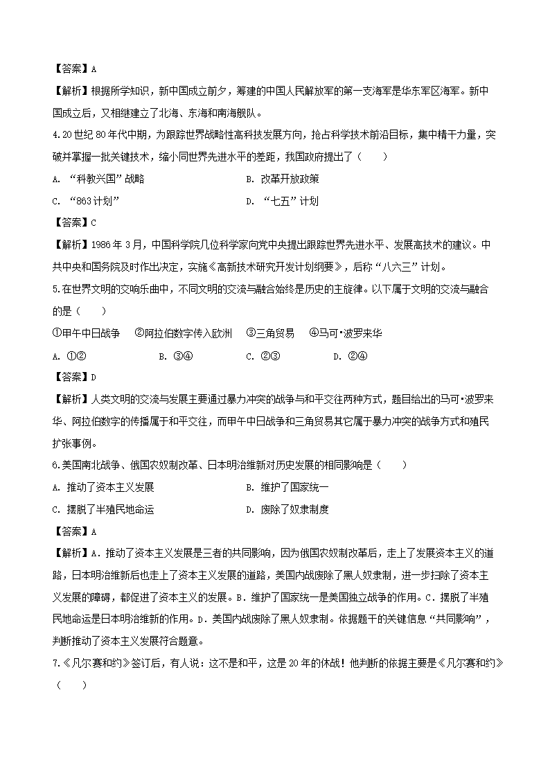【文档名称】 2018年贵州省安顺市中考历史试题及答案(Word版).doc