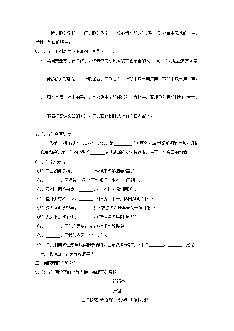 【文档名称】 2018年贵州省黔南州中考语文试题及答案(Word版).doc