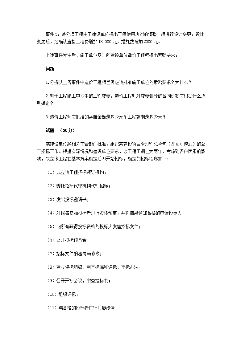【文档预览】 无忧考网整理发布2004年造价工程师案例分析考试真题及答案(Word版),前五页预览如下: