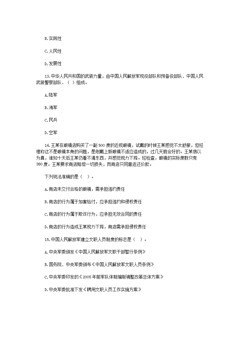 【文档预览】 无忧考网整理发布2019年军队文职统一考试公共科目真题(Word版),前五页预览如下: