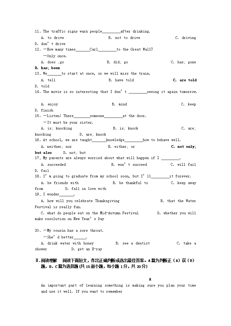 【文档名称】 2015山东省青岛市中考英语真题及答案(Word版).doc