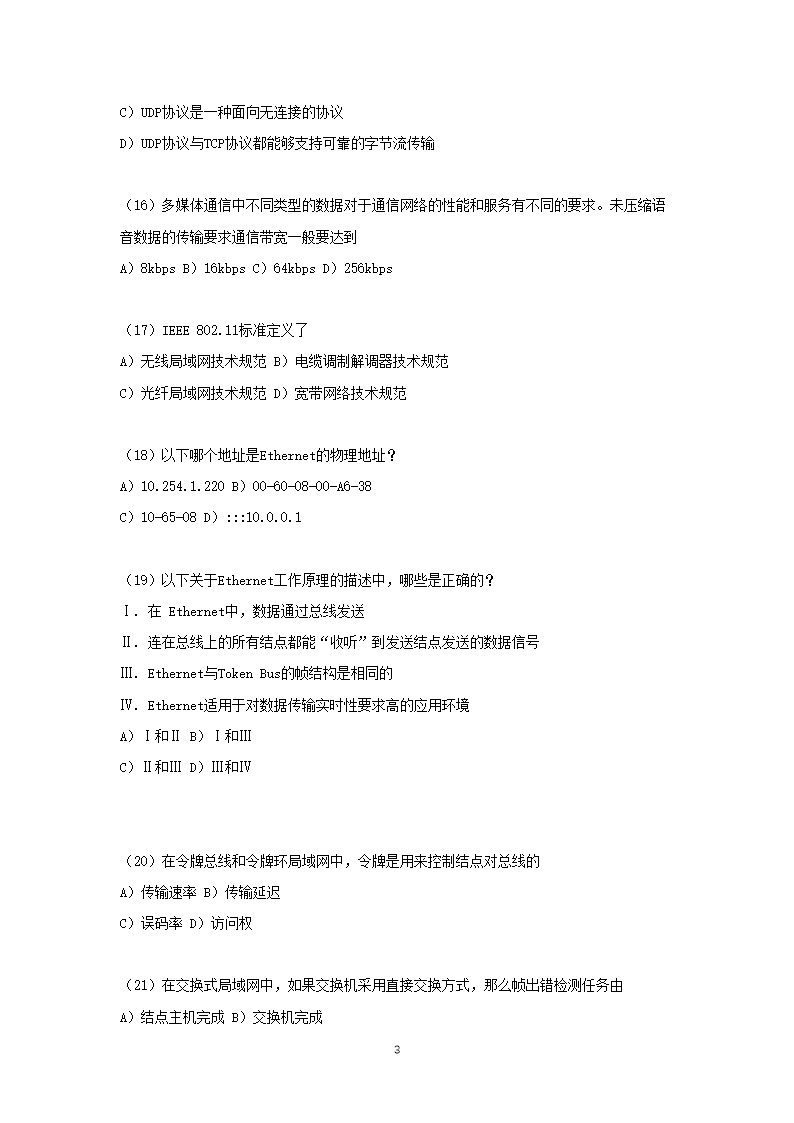 【文档名称】 2005年9月全国计算机三级网络技术考试真题及答案(Word版).doc